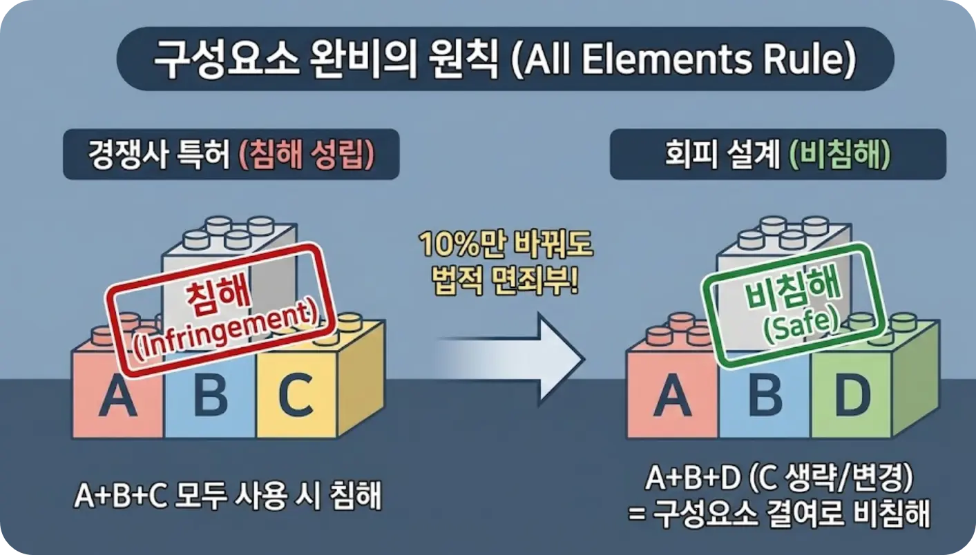 경쟁사의 특허는 넘지 못할 거대한 성벽이 아니라, 법리적 허점을 찌르면 얼마든지 우회할 수 있는 바리케이드일 뿐입니다.