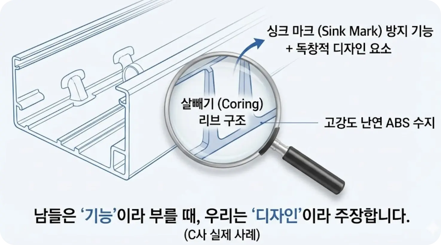 타 사무소에서는 단순히 외형 도면만 그렸지만, 저는 제품의 '살빼기(Coring)' 구조에 주목했습니다.
