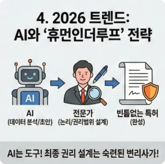 최근 AI를 이용해 특허 명세서를 작성하는 경우가 늘고 있습니다. 하지만 2026년의 핵심 키워드인 '휴먼인더루프(Human-in-the-loop)'를 기억하십시오.