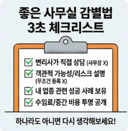 <좋은 변리사 사무실 감별법 3초 체크리스트>
