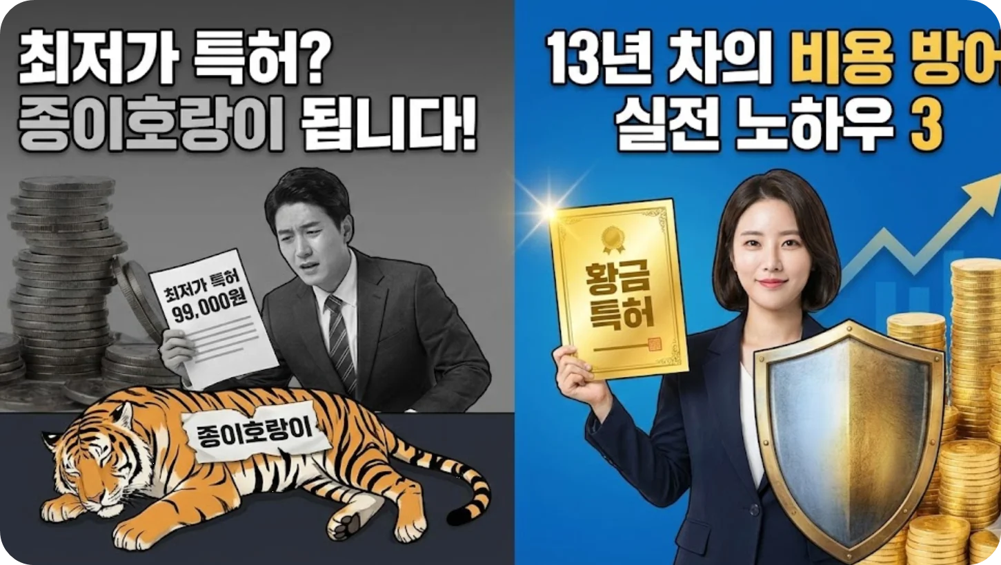 오늘 이 글에서는 13년 차 지식재산권 용병인 제가, 중소기업 대표님들이 특허 비용을 획기적으로 방어하고 리스크를 없애는 실전 노하우 3가지를 정리해 드리겠습니다.