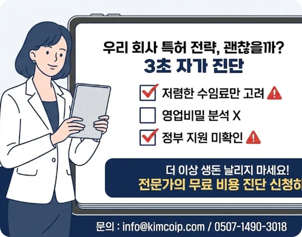 "블로그 보고 중소기업 특허 비용 문의드립니다"라고 말씀해 주시면, 13년 차 변리사인 제가 직접 기술의 본질을 분석하고 최적의 비용 절감 및 권리 확보 시나리오를 1차 진단해 드리겠습니다.