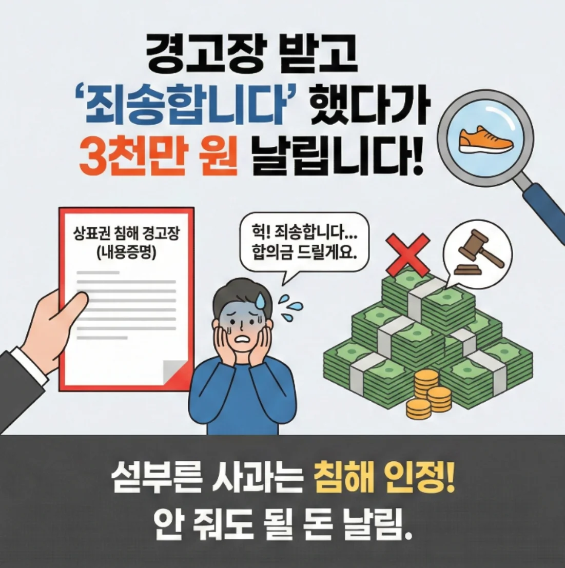 상표권위반, 경고장 받고 '죄송합니다' 했다가 3천만 원 날립니다