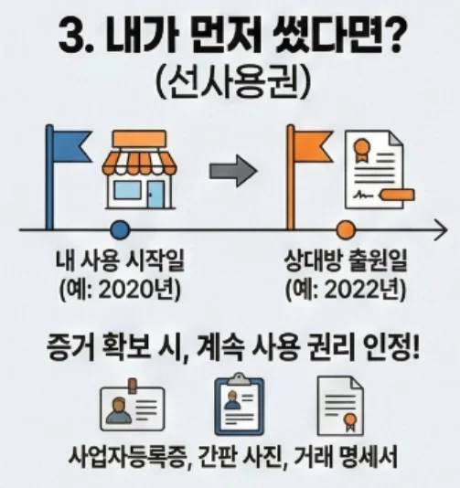 "상대방이 상표 등록하기 전부터 내가 먼저 간판 걸고 장사했는데 억울합니다."