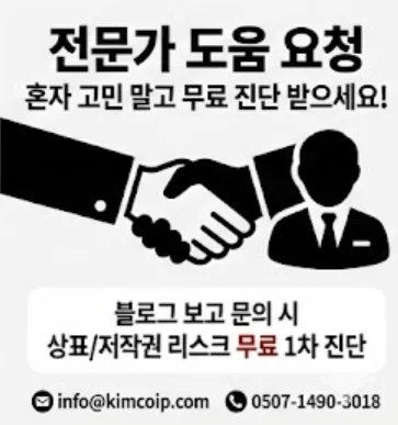 "블로그 보고 상호디자인 문의드립니다"라고 말씀해 주시면, 제가 직접 전산망을 통해 대표님 디자인의 상표 등록 가능성과 저작권 리스크를 무료로 1차 진단해 드리겠습니다.
