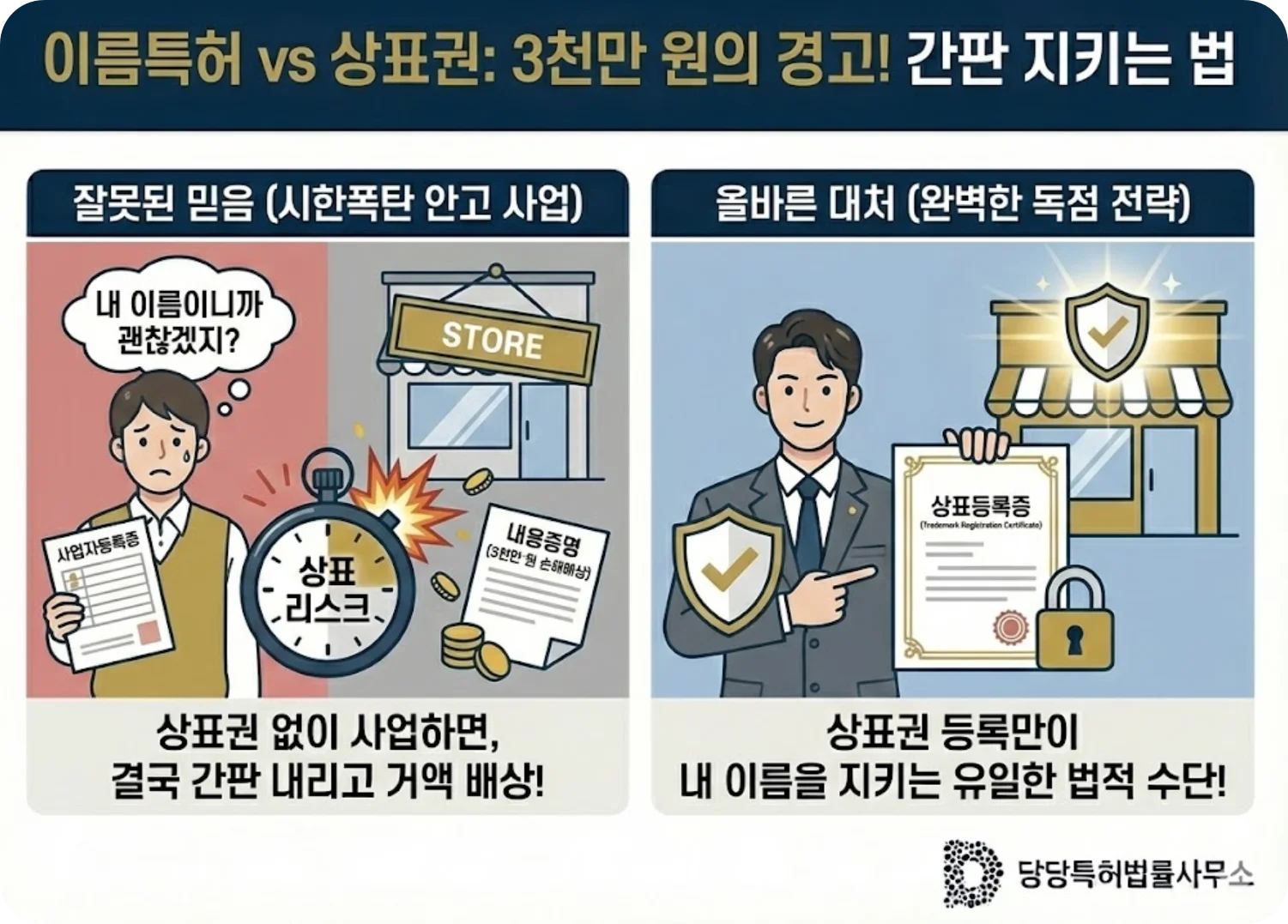 매년 수천 명의 자영업자가 열심히 키운 브랜드 이름을 하루아침에 뺏기고, 간판을 내리는 것도 모자라 거액의 합의금까지 물어주는 일이 발생합니다. 이유는 단 하나, '상표권'이 없었기 때문입니다.