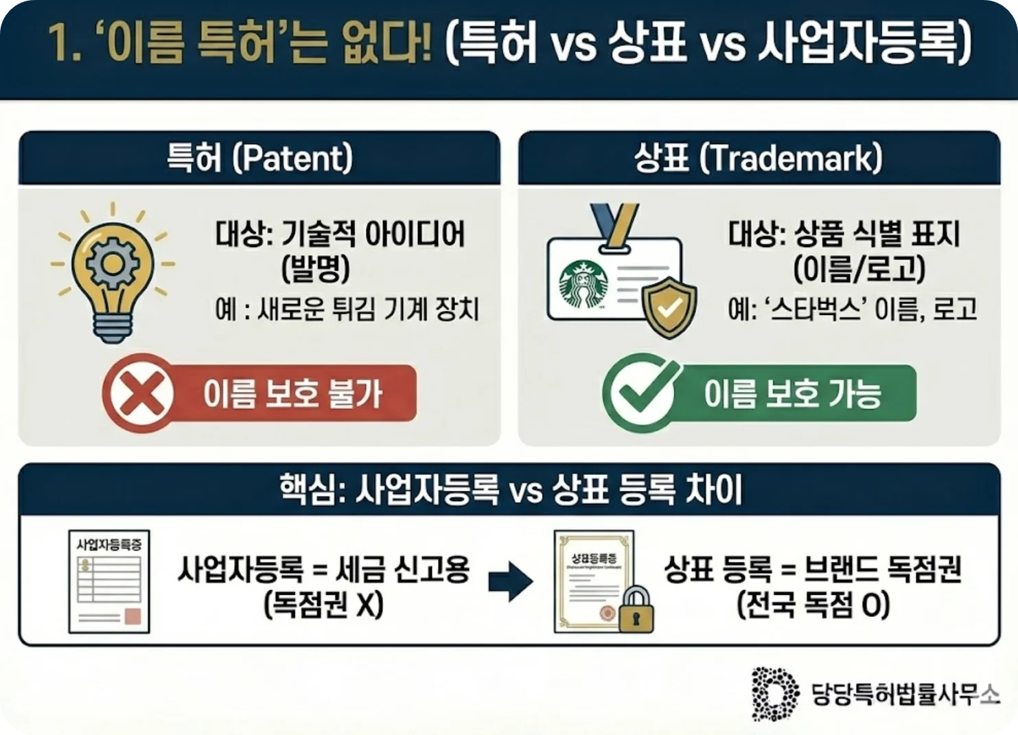 1. '이름 특허'는 없습니다 (상표권과의 차이)