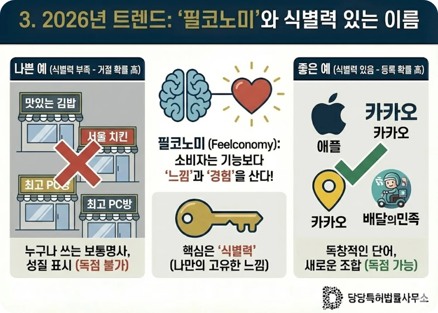 남들과 차별화되면서도 법적으로 '식별력'을 인정받을 수 있는 이름을 짓고, 이를 빠르게 권리화하는 것이 2026년 브랜드 성공의 열쇠입니다.