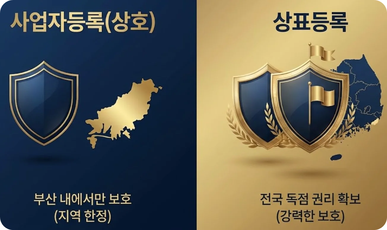 사업자등록(상호): 부산진구 내에서만 동일한 상호를 못 쓰게 할 뿐, 타인이 서울이나 다른 지역에서 똑같은 이름으로 프랜차이즈를 내도 막을 수 없습니다.