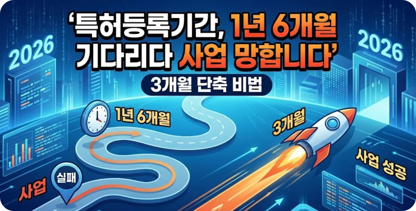 일반적인 특허 심사 기간은 평균 1년 6개월에서 2년이 걸립니다. 스타트업이나 트렌드 변화가 빠른 기업에게 이 시간은 '영원'과도 같습니다. 등록증이 나오기도 전에 사업 아이템의 유행이 지나가거나, 경쟁사에게 시장을 점유당해 폐업하는 안타까운 사례를 너무나 많이 봐왔습니다.