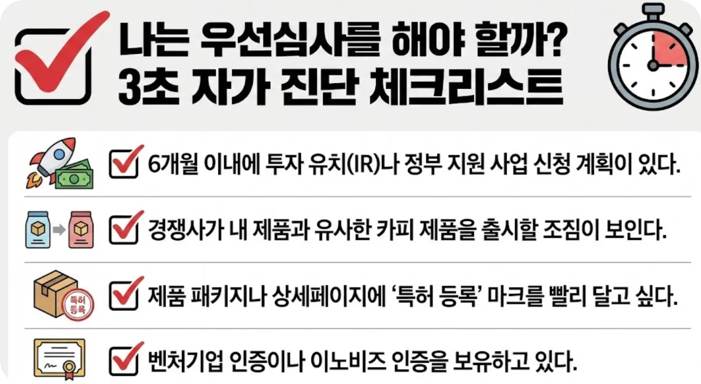 잠시 스크롤을 멈추고 확인해 보세요. 하나라도 해당한다면 우선심사를 적극 고려해야 합니다.