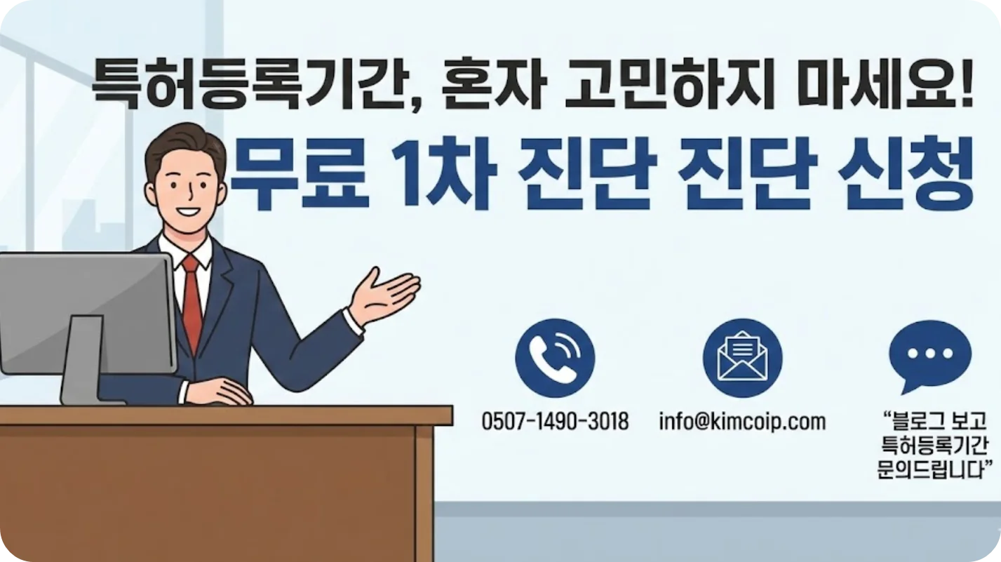 "블로그 보고 특허등록기간 문의드립니다"라고 말씀해 주시면, 제가 직접 전산망을 통해 대표님 상황에 가장 유리한 심사 트랙(일반 vs 우선)과 예상 등록 시점을 무료로 1차 진단해 드리겠습니다.