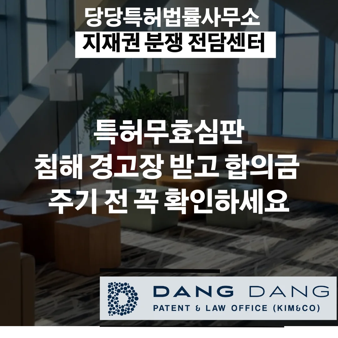 #특허무효심판 #특허침해경고장 #내용증명대응 #특허소송 #특허무효사유 #특허취소신청 #변리사 #당당특허법률사무소 #지식재산권분쟁 #특허심판원