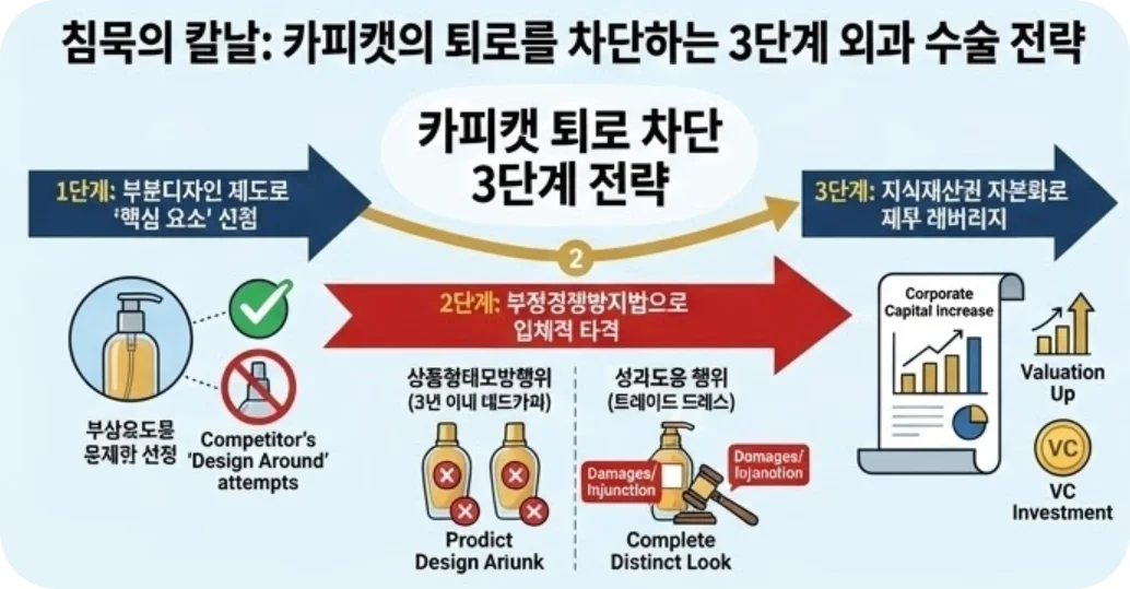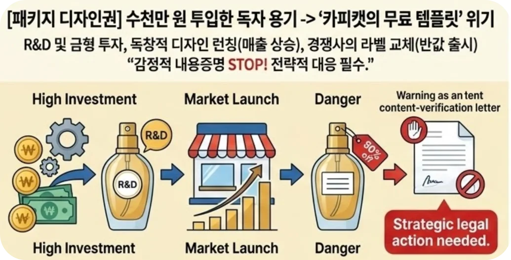 경쟁사들은 이 법리적 맹점을 정확히 파고듭니다. "디자인 등록 원부가 없으니 용기 형태를 베껴도 합법이다"라는 오만함으로, 귀사가 막대한 자본으로 개척한 시장에 무혈입성하여 단물만 취하는 것입니다.