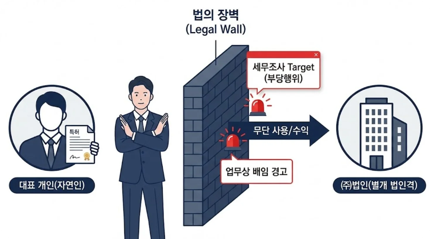• 부당행위계산부인 리스크: 세무 당국은 이를 특수관계인 간의 부당한 거래로 봅니다. 법인이 대표에게 정당한 사용료(로열티)를 지급하지 않았으므로, 법인의 이익이 과대 계상된 것으로 보아 세무조사의 타깃이 될 수 있습니다.