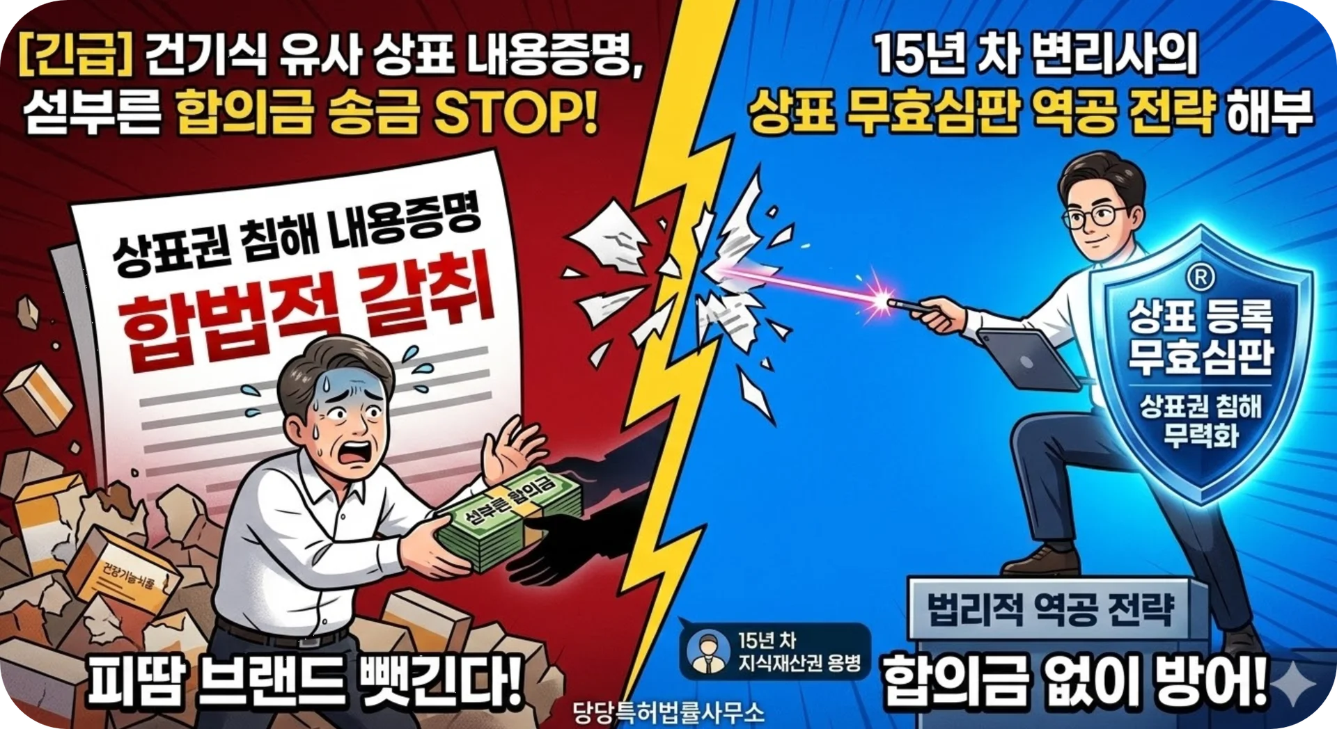 [건강기능식품 상표 무효] 유사 상표 내용증명, 섣부른 합의금 송금 전 '이것'부터 확인하십시오 (무효심판 방어전)