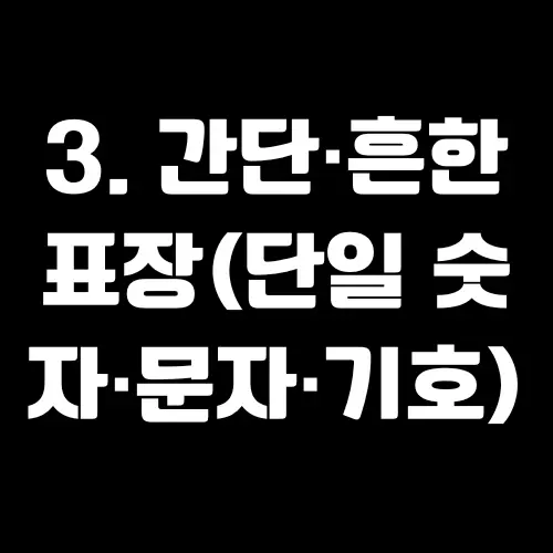 3. 간단·흔한 표장(단일 숫자·문자·기호)