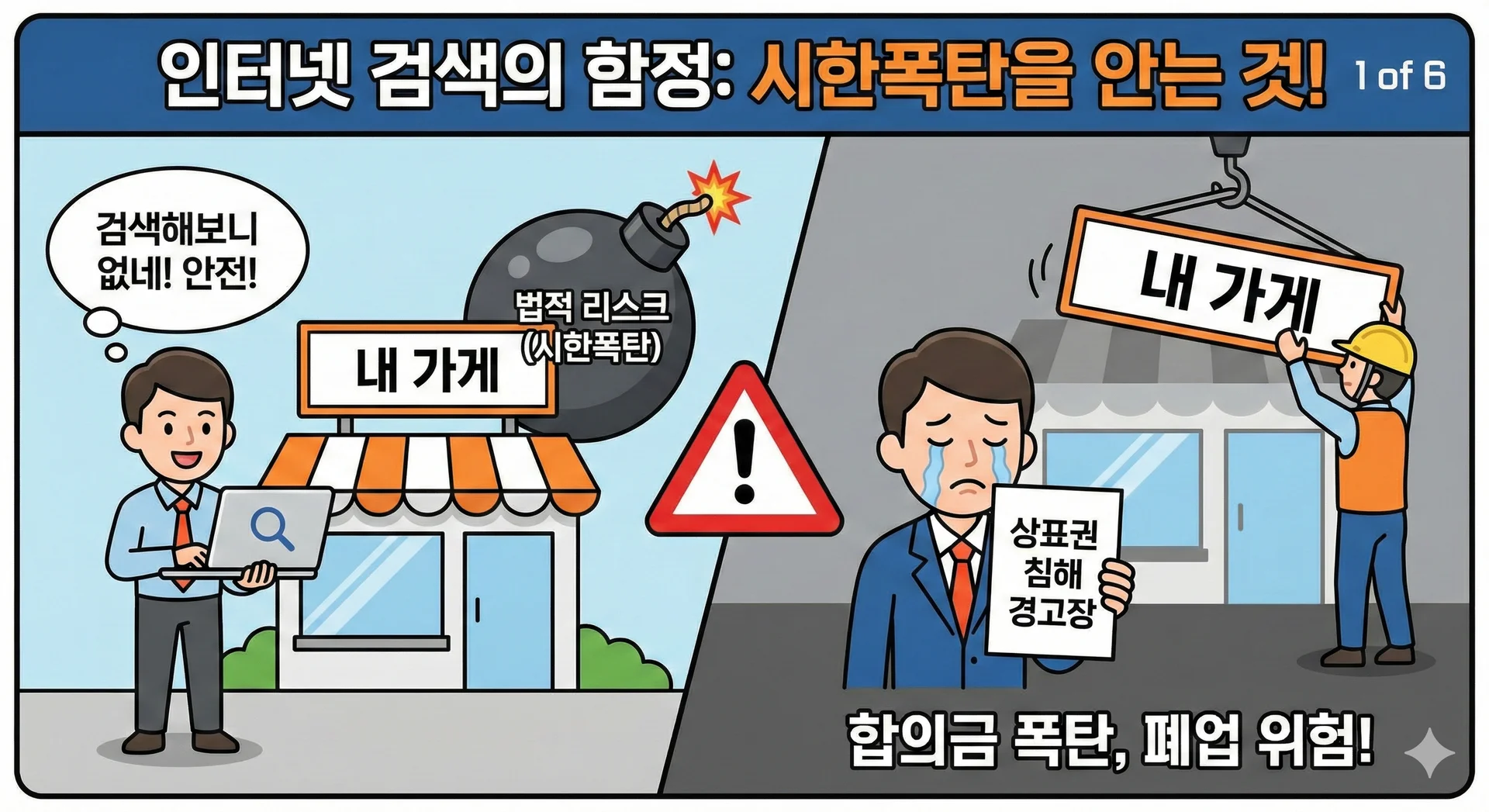 수천만 원의 인테리어 비용과 마케팅 비용을 쏟아부은 소중한 내 가게입니다. 검색 한 번 잘못해서 간판을 떼는 일은 없어야 합니다.
