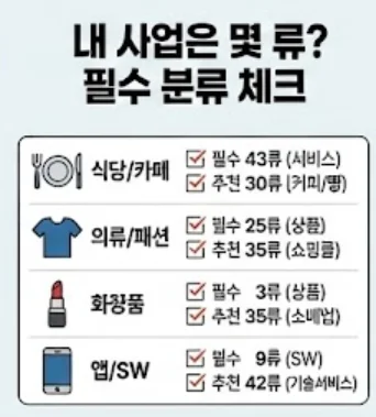 지금 준비 중인 사업 아이템을 확인해 보세요. 아래 분류는 최소한의 필수 항목이며, 사업 확장에 따라 추가가 필요할 수 있습니다.