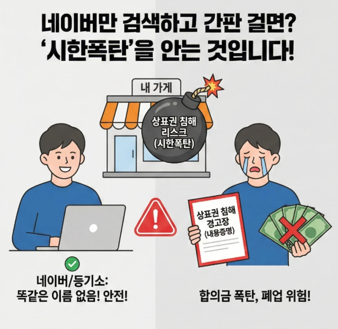 단순히 인터넷이나 등기소에서 겹치는 이름이 없다고 해서 안심했다가, 오픈 6개월 만에 상표권 침해 내용증명을 받고 수천만 원의 합의금을 물어주거나, 눈물을 머금고 간판을 내려야 하는 사장님들을 너무나 많이 봐왔습니다.