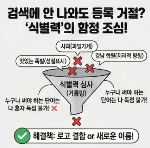 키프리스에 검색되지 않는다고 해서 무조건 등록 가능한 것도 아닙니다. '식별력'이 없으면 등록이 거절됩니다.